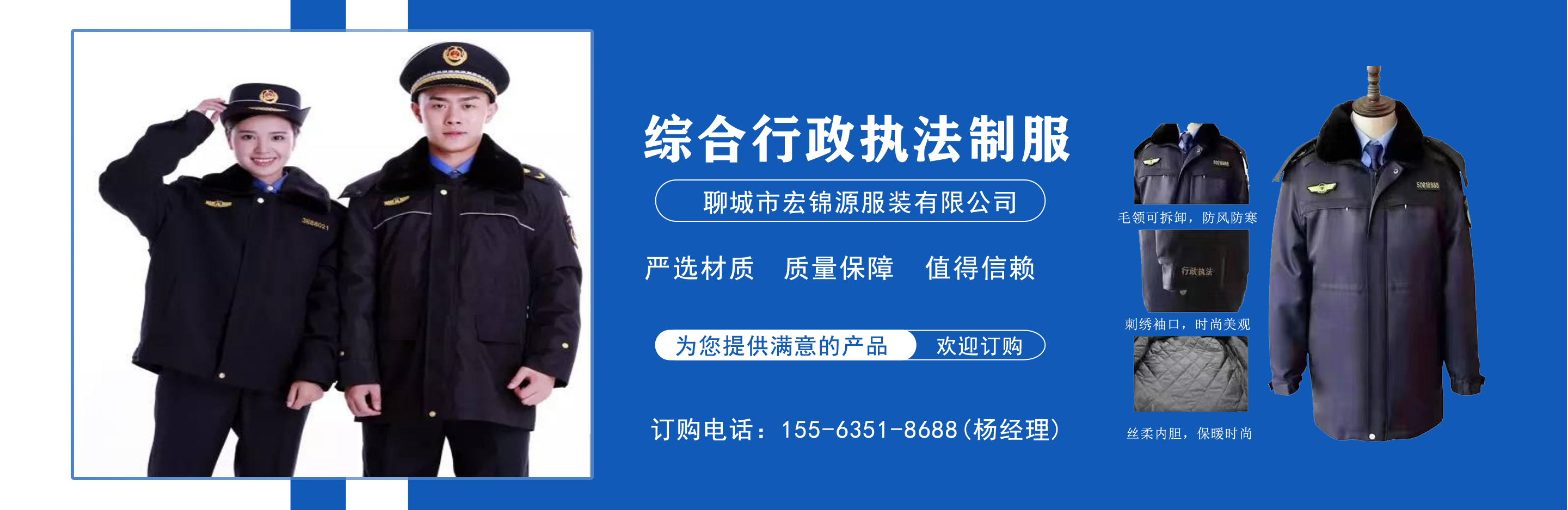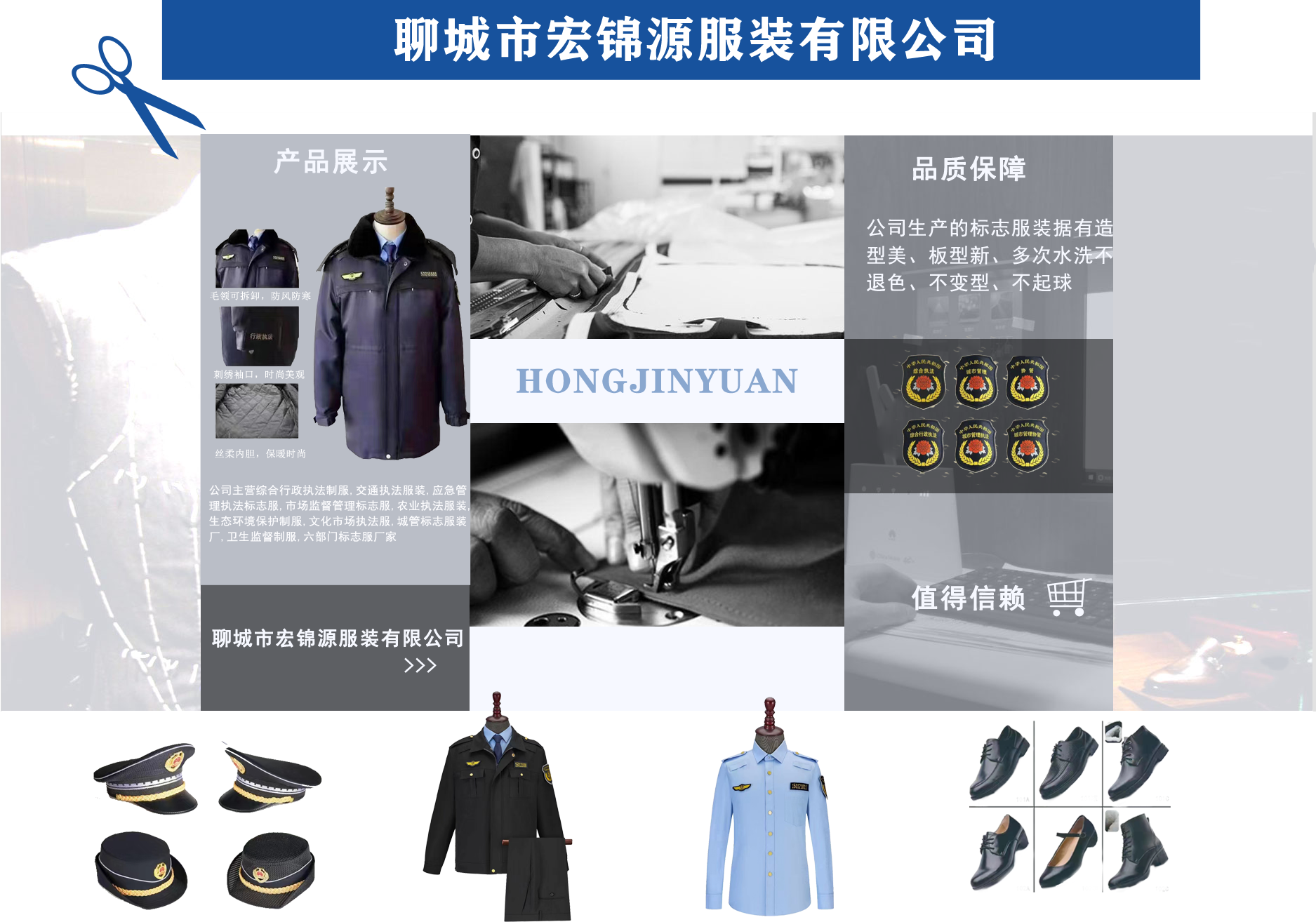 聊城市宏錦源服裝有限公司位于江北水城—山東聊城,地理位置優(yōu)越,交通便利。公司主營綜合行政執(zhí)法制服,交通執(zhí)法服裝,應急管理執(zhí)法標志服,市場監(jiān)督管理標志服,農(nóng)業(yè)執(zhí)法服裝,生態(tài)環(huán)境保護制服,文化市場執(zhí)法服,城管標志服裝廠,衛(wèi)生監(jiān)督制服,六部門標志服廠家等,值得信賴! 公司生產(chǎn)的標志服裝據(jù)有造型美、板型新、多次水洗不退色、不變型、不起泡。 “認真辦事,踏實做人”是宏錦源的企業(yè)精神,我們的宗旨是:“用服務與真誠來換取你的信任與支持,互惠互利,共創(chuàng)雙贏!”我公司愿與國內(nèi)外各界同仁志士竭誠合作,共創(chuàng)未來企業(yè)目標:在已選定的服飾領域中,成為行業(yè)的卓越者。 經(jīng)營理念:追求產(chǎn)品卓越,為用戶提供完美、高效的服務。...